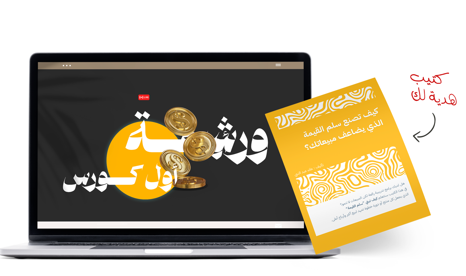 سنرشدك خطوة بخطوة من الفكرة إلى أول عميل حقيقي — من كتابة عنوان الكورس، إلى صفحة المبيعات، إلى إطلاق بسيط وفعّال حتى وإن لم يكن لديك جمهور كبير بعد.